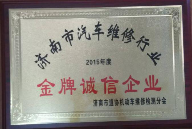2016年6月,修理廠被濟南市道路運輸協(xié)會機動車維修檢測分會授予“濟南市維修行業(yè)2015年度金牌誠信企業(yè)”。