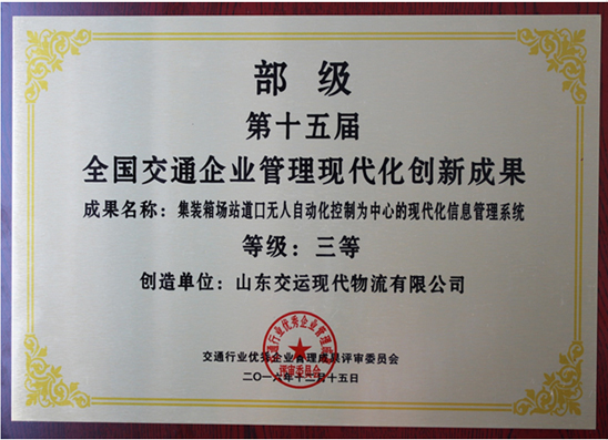 山東交運現(xiàn)代物流有限公司榮獲全國交通企業(yè)管理現(xiàn)代化創(chuàng)新成果三等獎